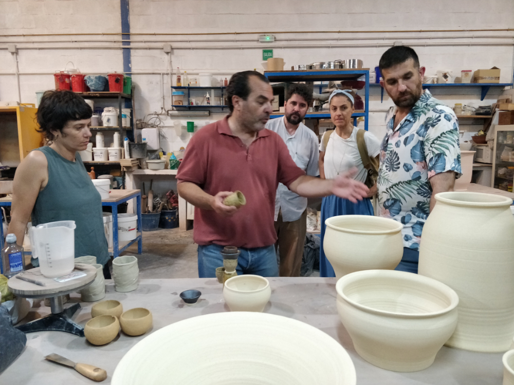 El jueves comenzó con una sesión práctica sobre el diseño y concepto que esconden sus formas. Se habló de albariza, de tierras locales, de podas de vid que se transforman en materia viva para el arte. Las piezas, pensadas como instrumentos musicales tanto como elementos urbanos, condensan una búsqueda material y simbólica.